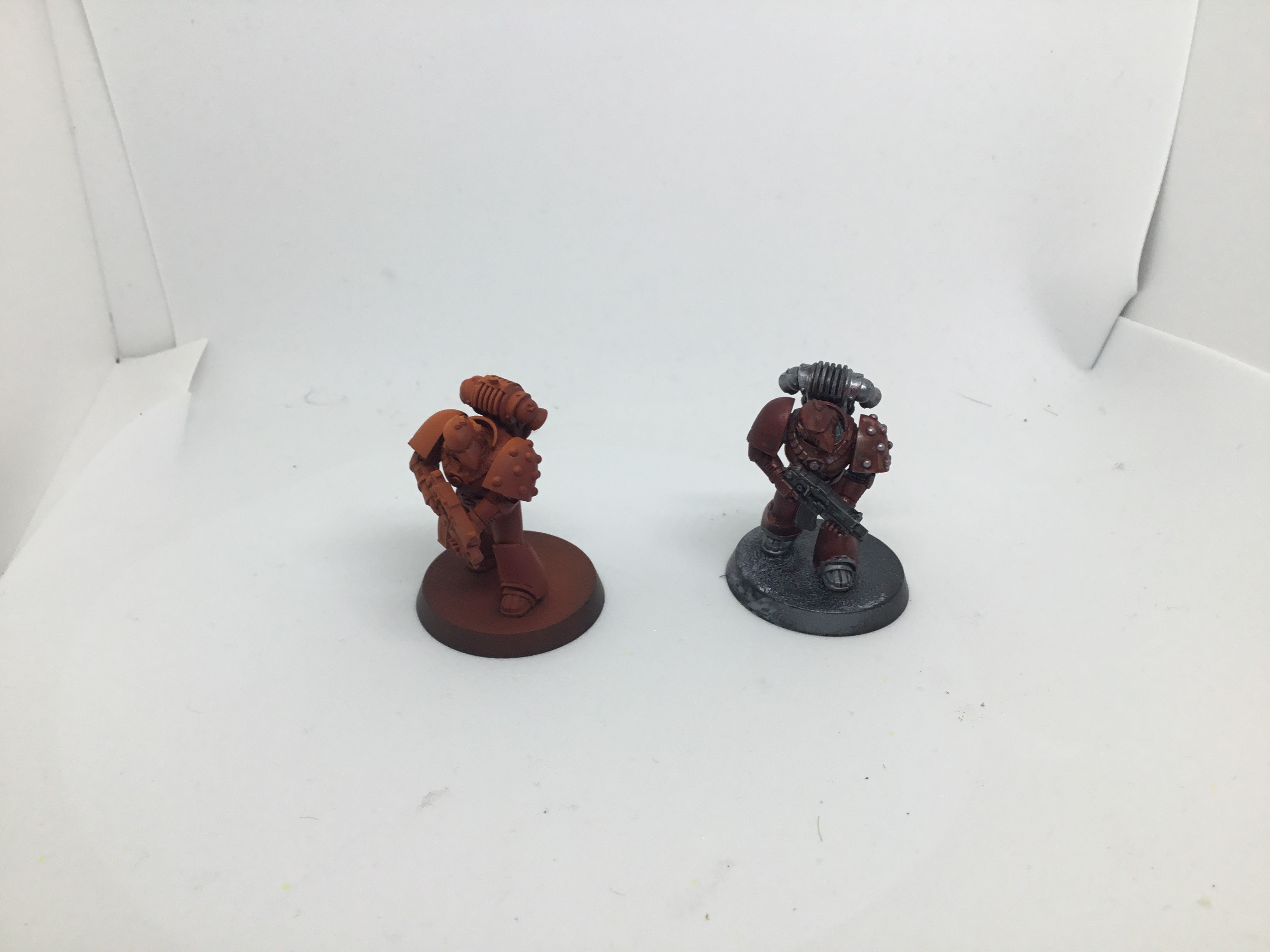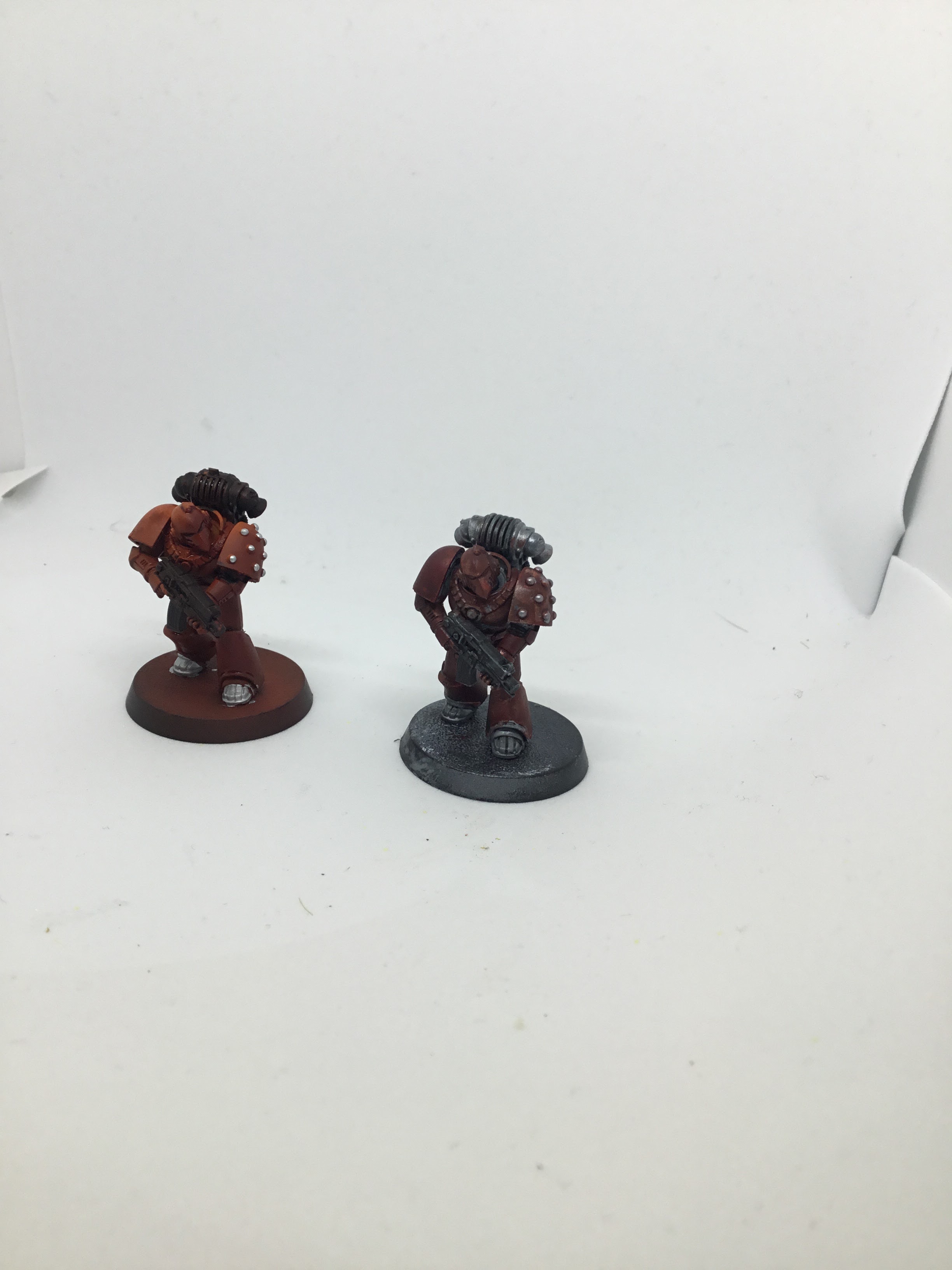 You can see the side-by-side comparison; the gradient model came out much bolder. I will base both models on the next just to see how they look complete. I literally have 250 Horus Heresy Marines lying around. If one or two become sacrifices, I will live.