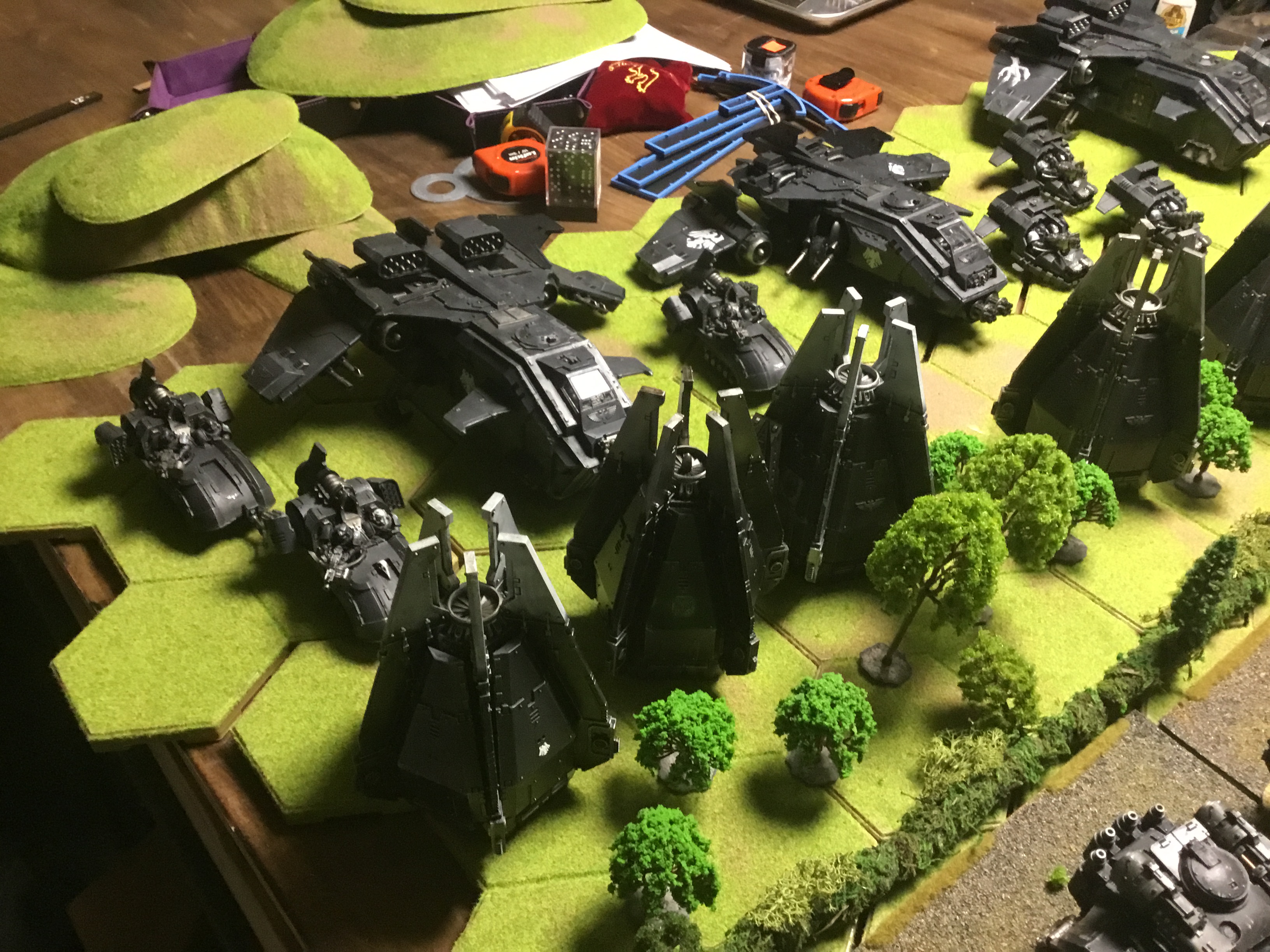 Not much to report. The Furies, Assault Squads, Destroyer Squads, and Strike Captain are all in deep strike. The flying bases indicate the flying machines. I knock them over too often.