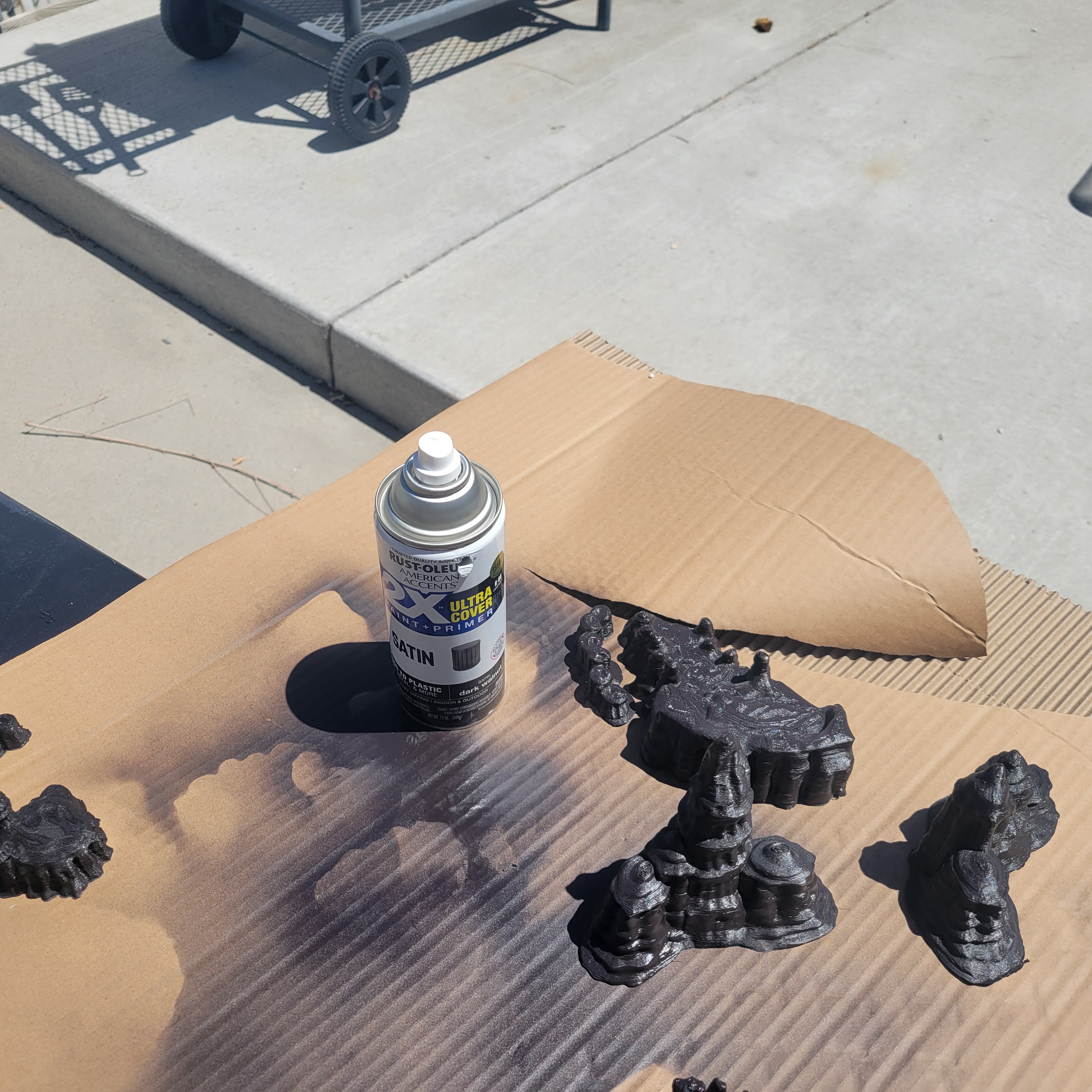 Everything was started with black PLA. I primed with a brown spray paint from WalMart.