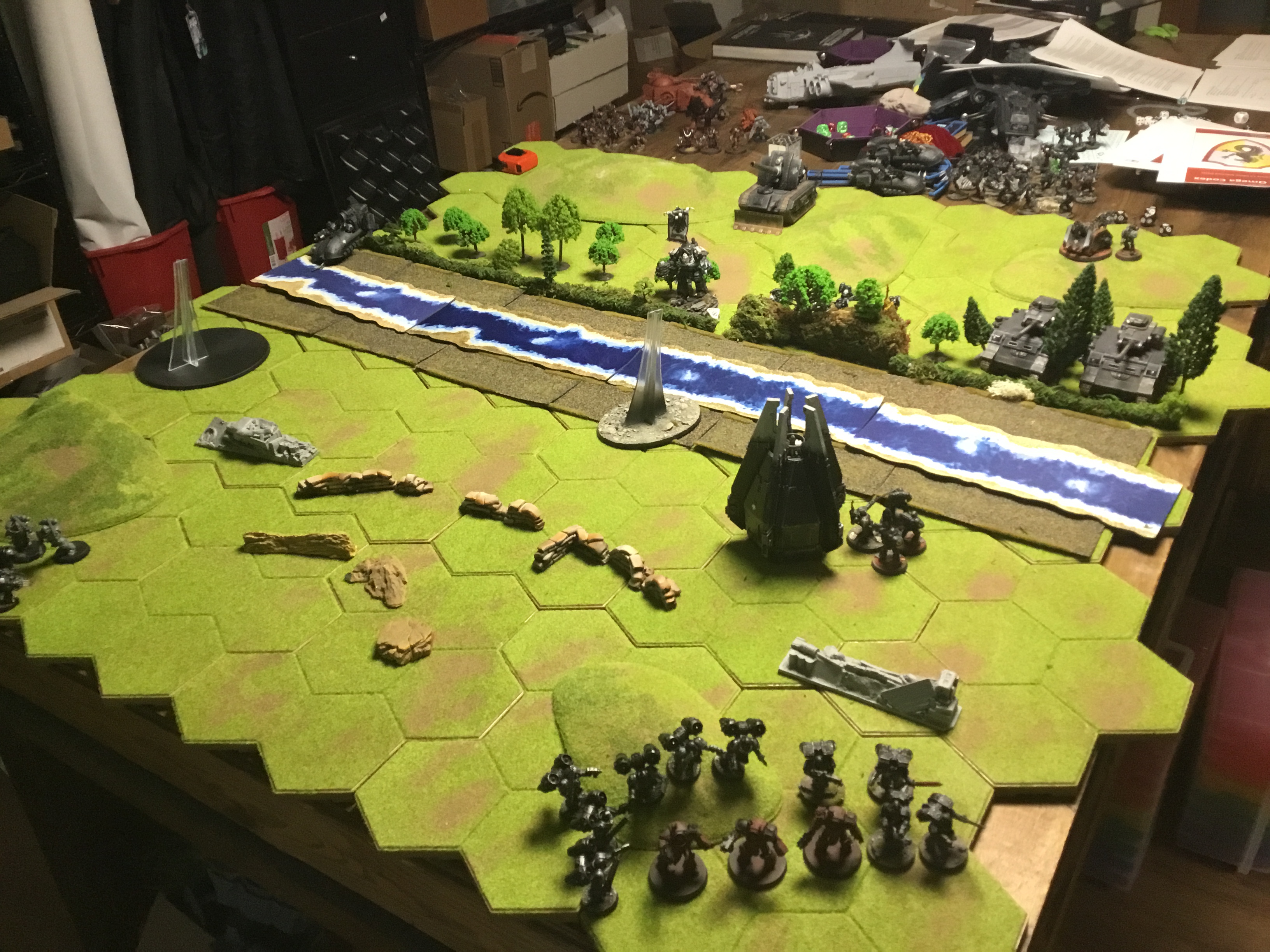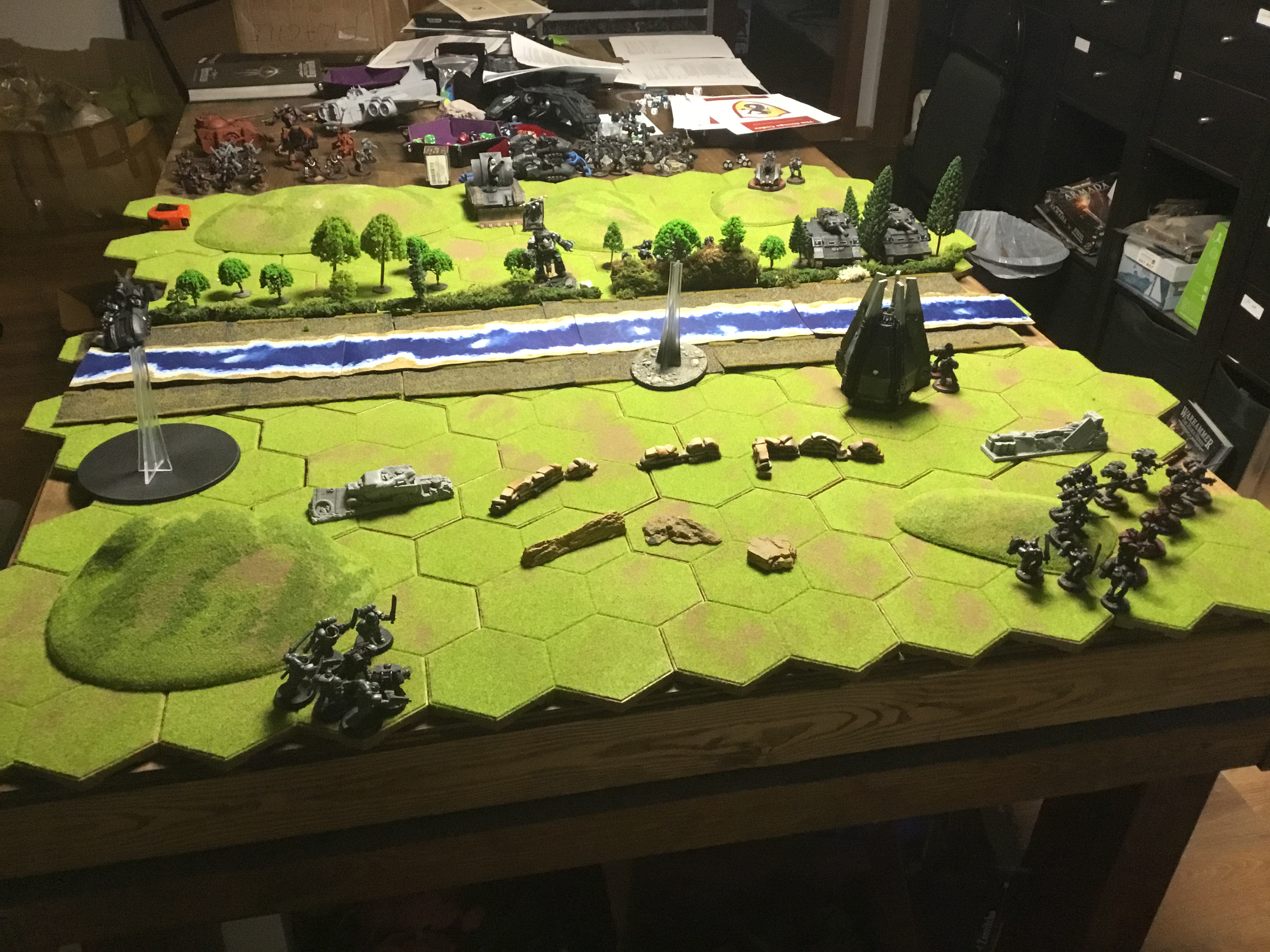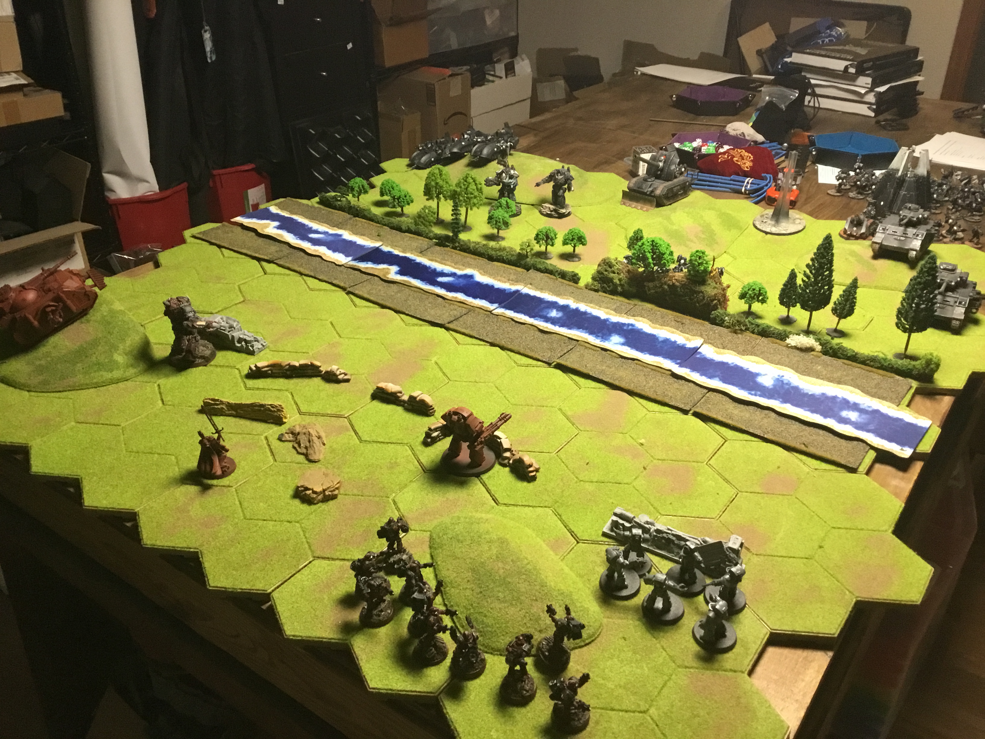 This is another river crossing scenario. This time, the defenders are dug in and prepared for the enemy. However, the enemy has numerical and technological superiority. One thing that Horus Heresey plays much better at than Bolt Action is the addition of flying units.
