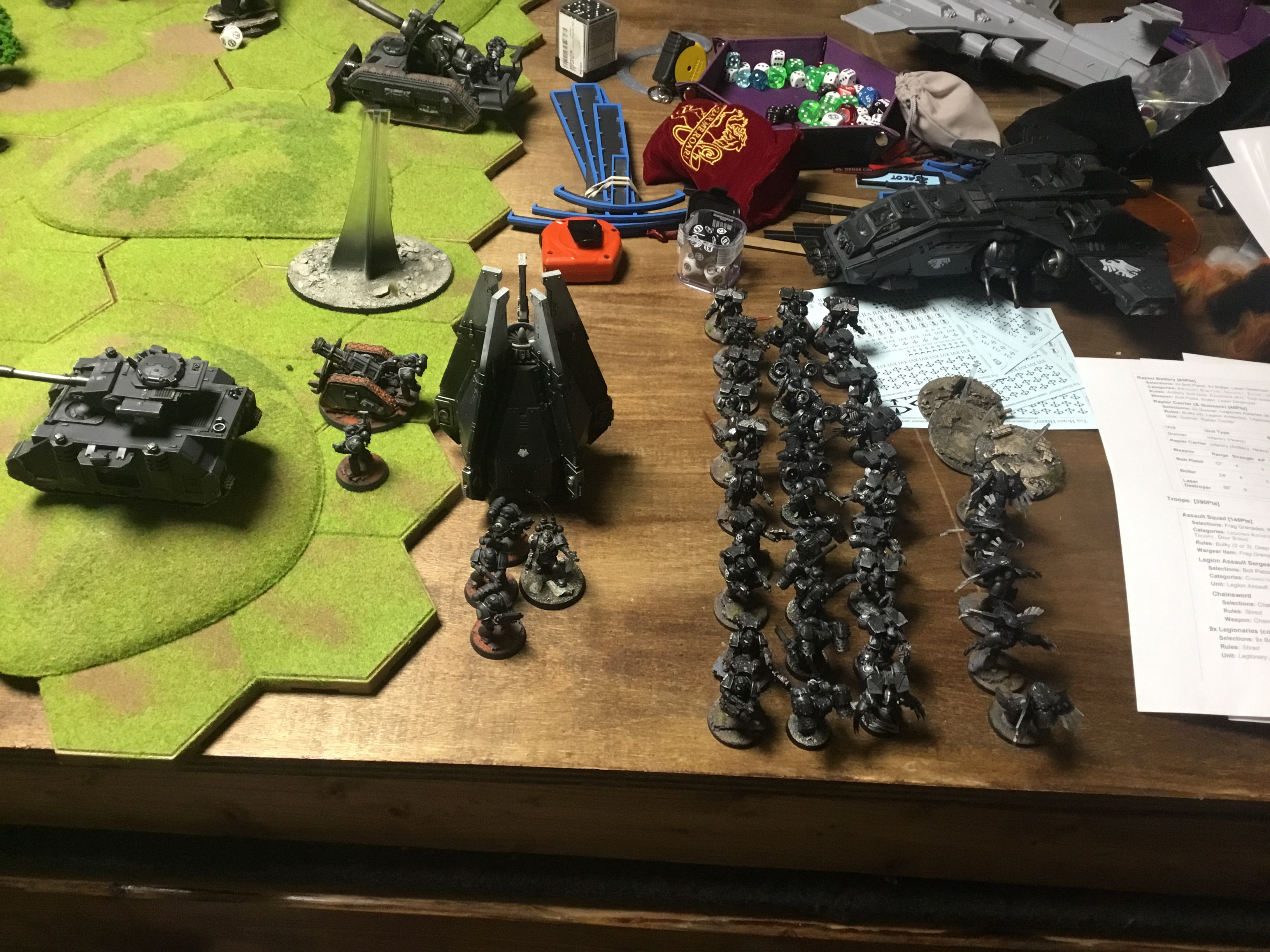 The Raven’s slayed the enemy warlord with the multiple assault squads and the command squad on the Word Bearer side of the river. The Ravenguard took the minor victory at 9 VPs to the Word Bearers 7 VPs. Honestly, if the Rapier does not take down the Mhara Gal. I think the Word Bearers pull this one off. The Mhara Gal would have destroyed another Ravenguard Unit and saved their Praetor, which gives +3 to the Bearers and -3 to the guard. Plus, I think the Predator tank lives.