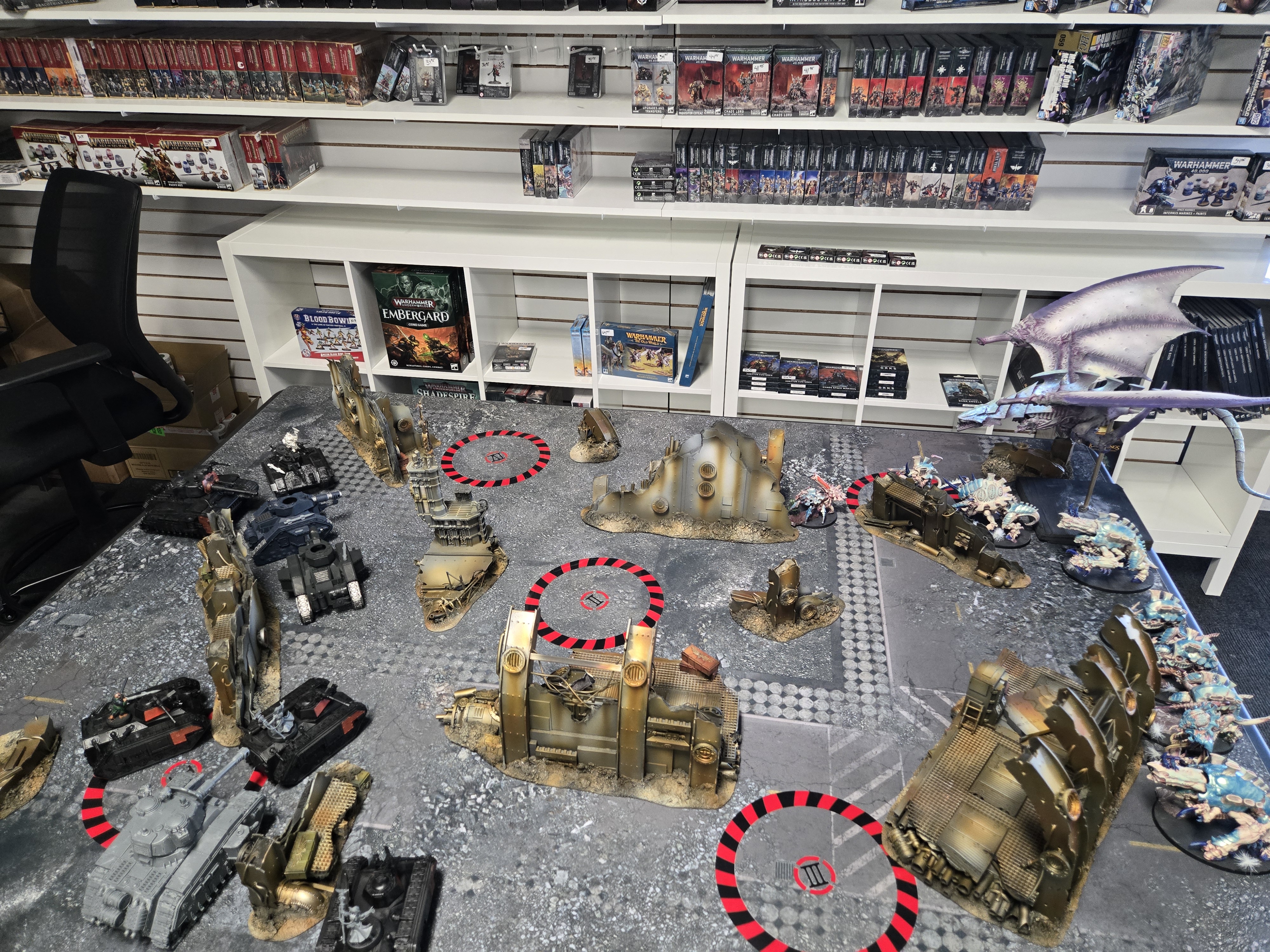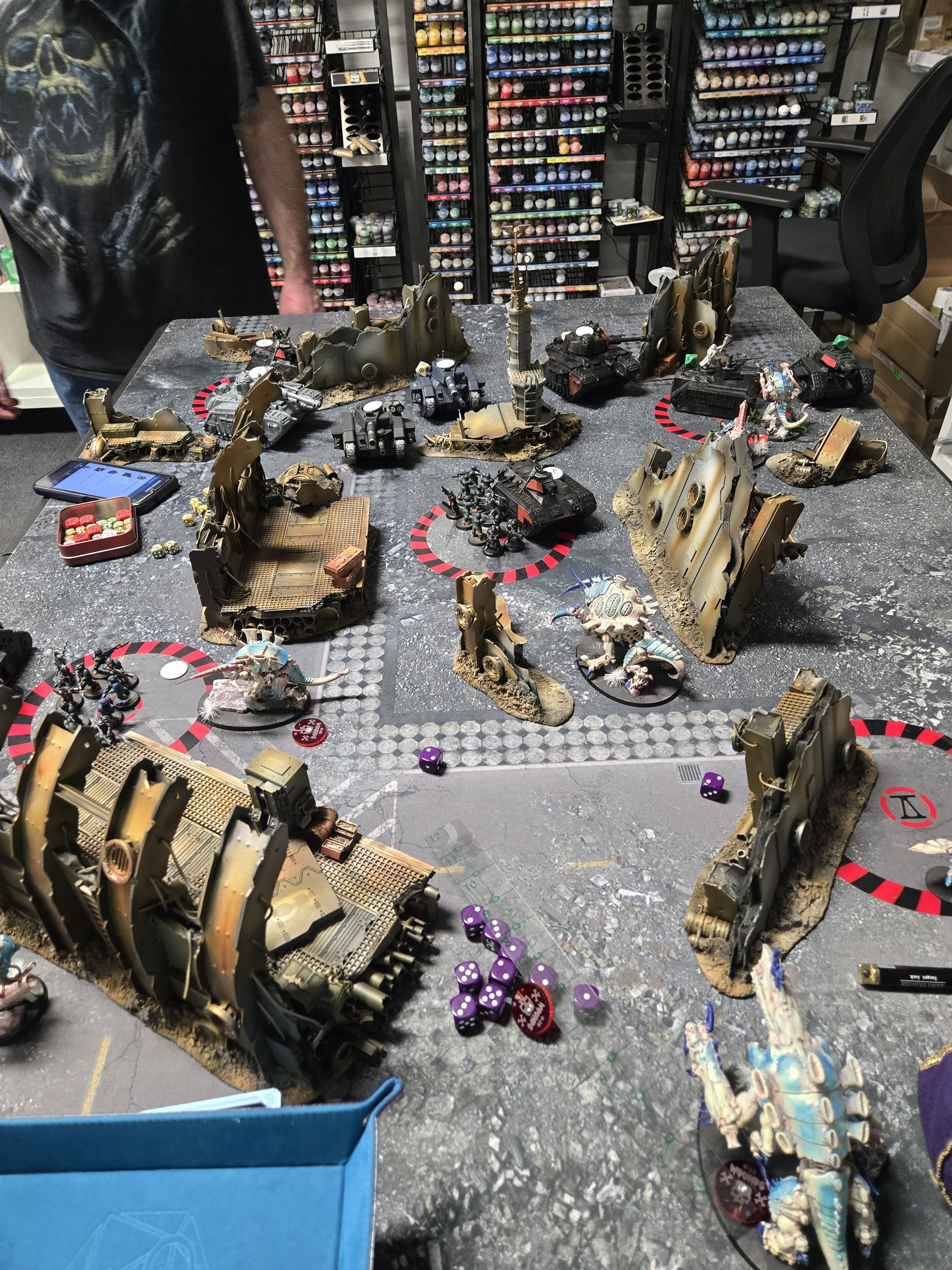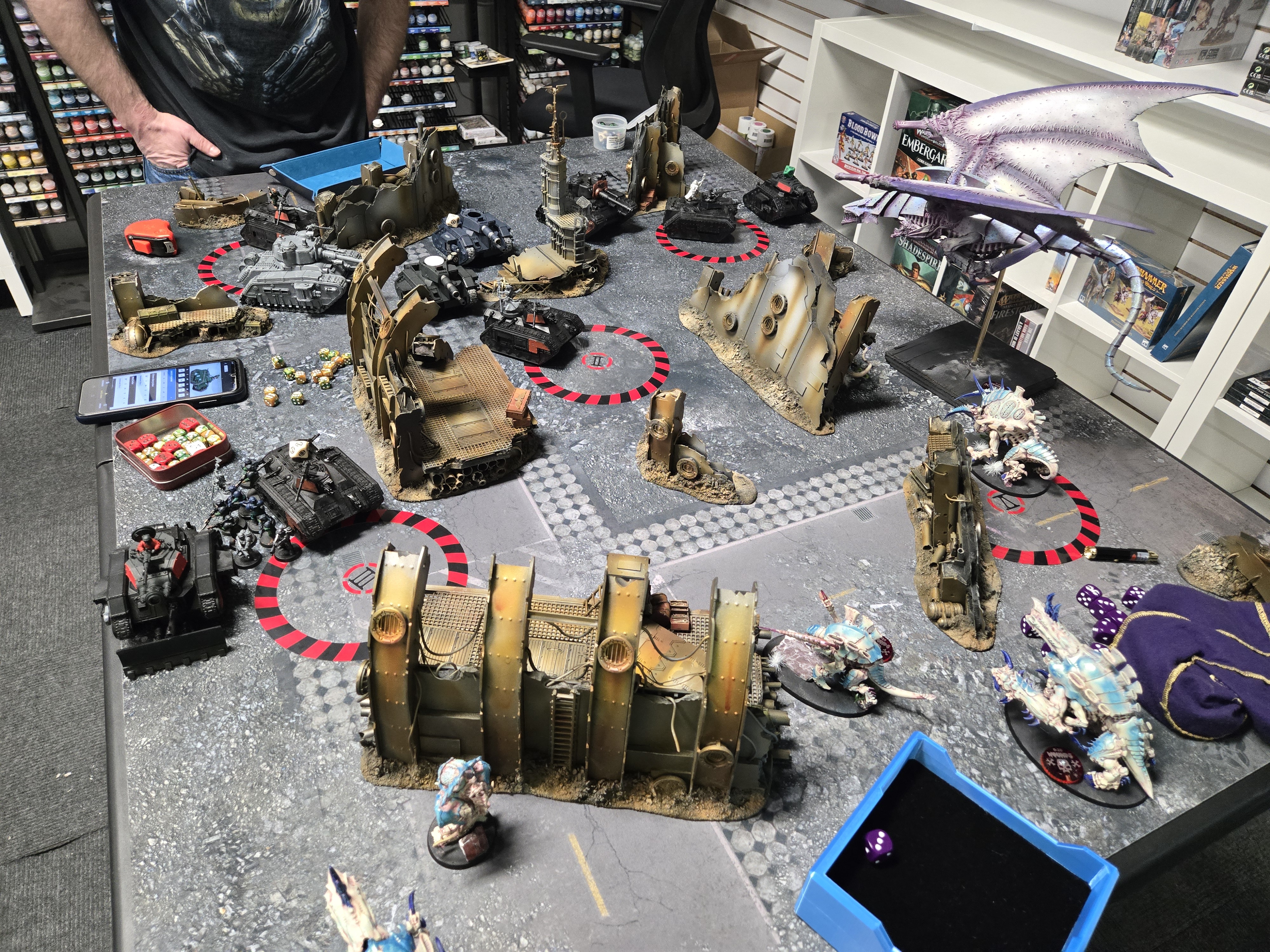 After round 2, I lost my carnify and still have not destroyed a tank. Plus, he was able to bring on two more from deepstrike. The game was over at this point. Both exocrines had less than 3 wounds remaining.