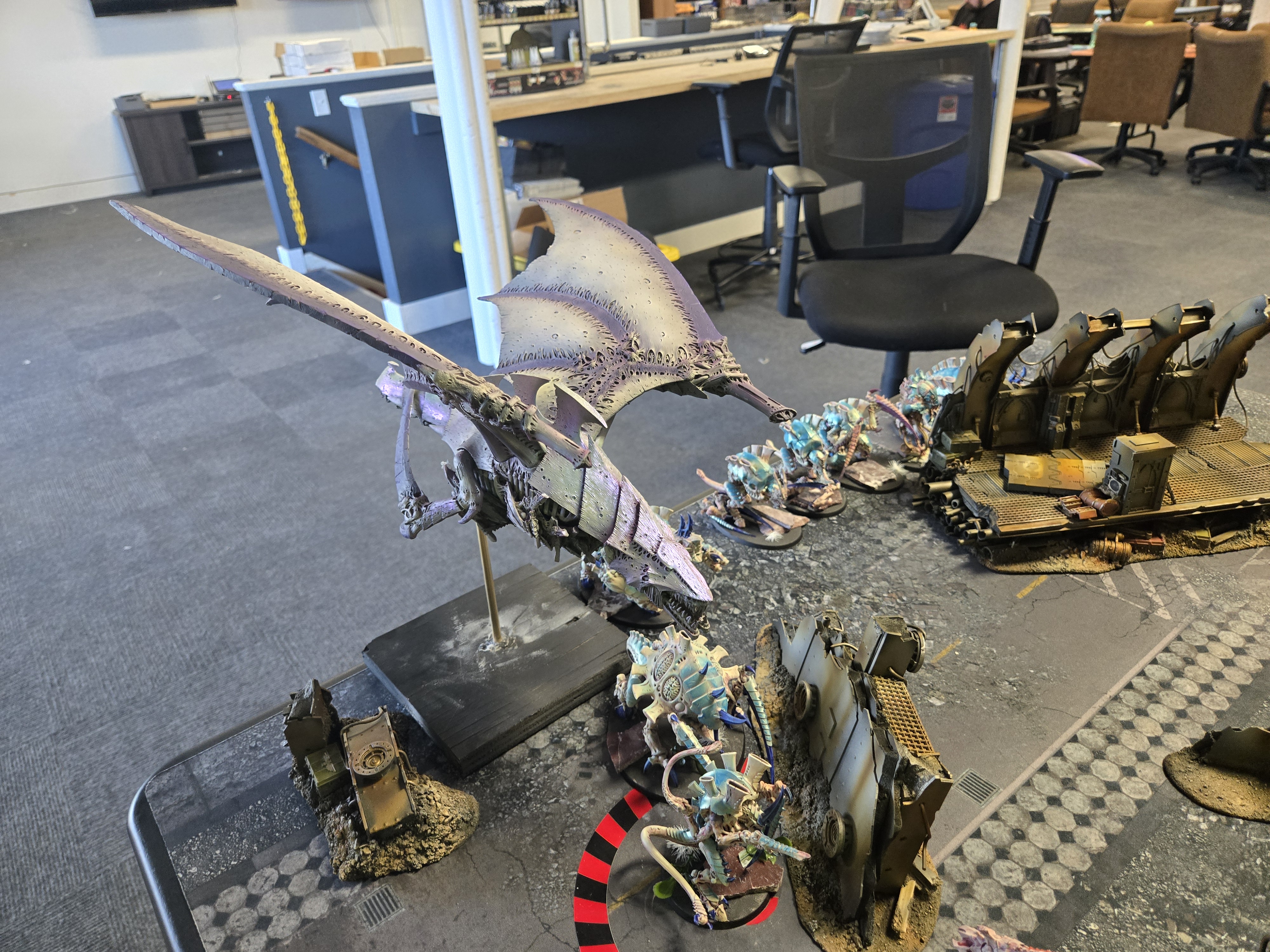 I had a tough time facing down 7 Lemon Russ, 2 Regal Dorns, and 4 Chimeras. My anti-tank just wasn’t practical, and it didn’t help. Instead of 3 maliceptors and 3 exocrines, I brought a Harridan.