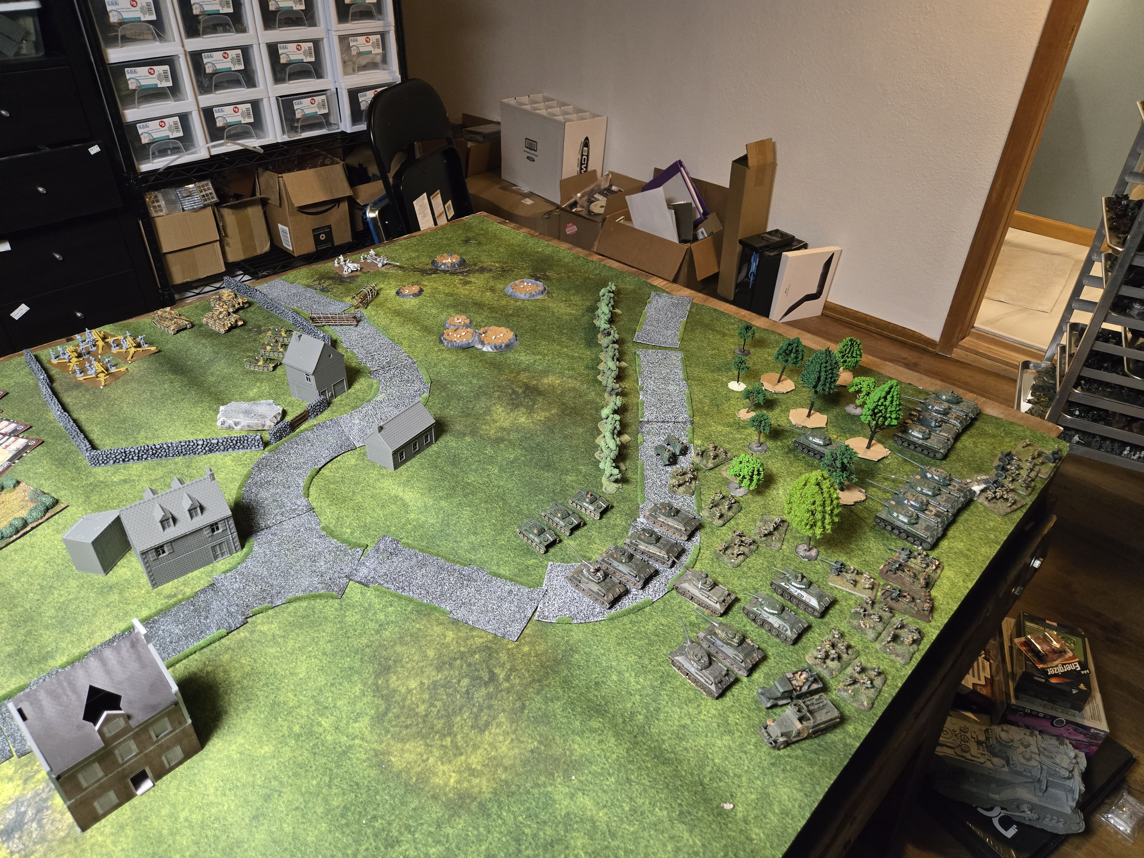 I brought a decently large Soviet Force against a relatively elite late-war German Force. The Germans, as a whole, were unable to do enough damage to stem the tide of Soviet tanks and thus lost the engagement. I did misplay a little and did not dig in with the 88s. Could have made a difference, we will never know. The Soviets literally brought 21 tanks to the fight. I maybe could have positioned the 88s better to avoid so much damage the first turn, but I don’t think it would have mattered.