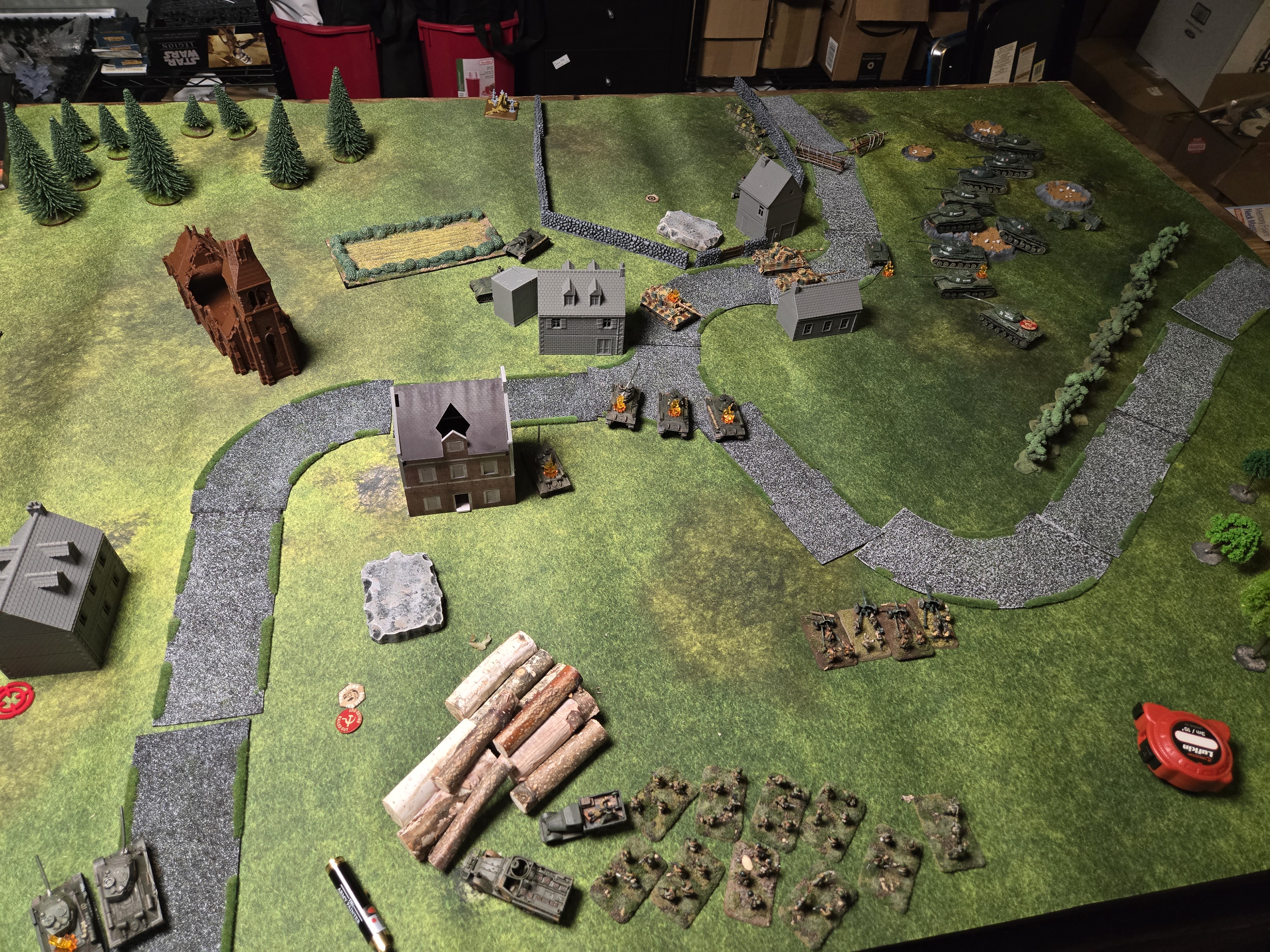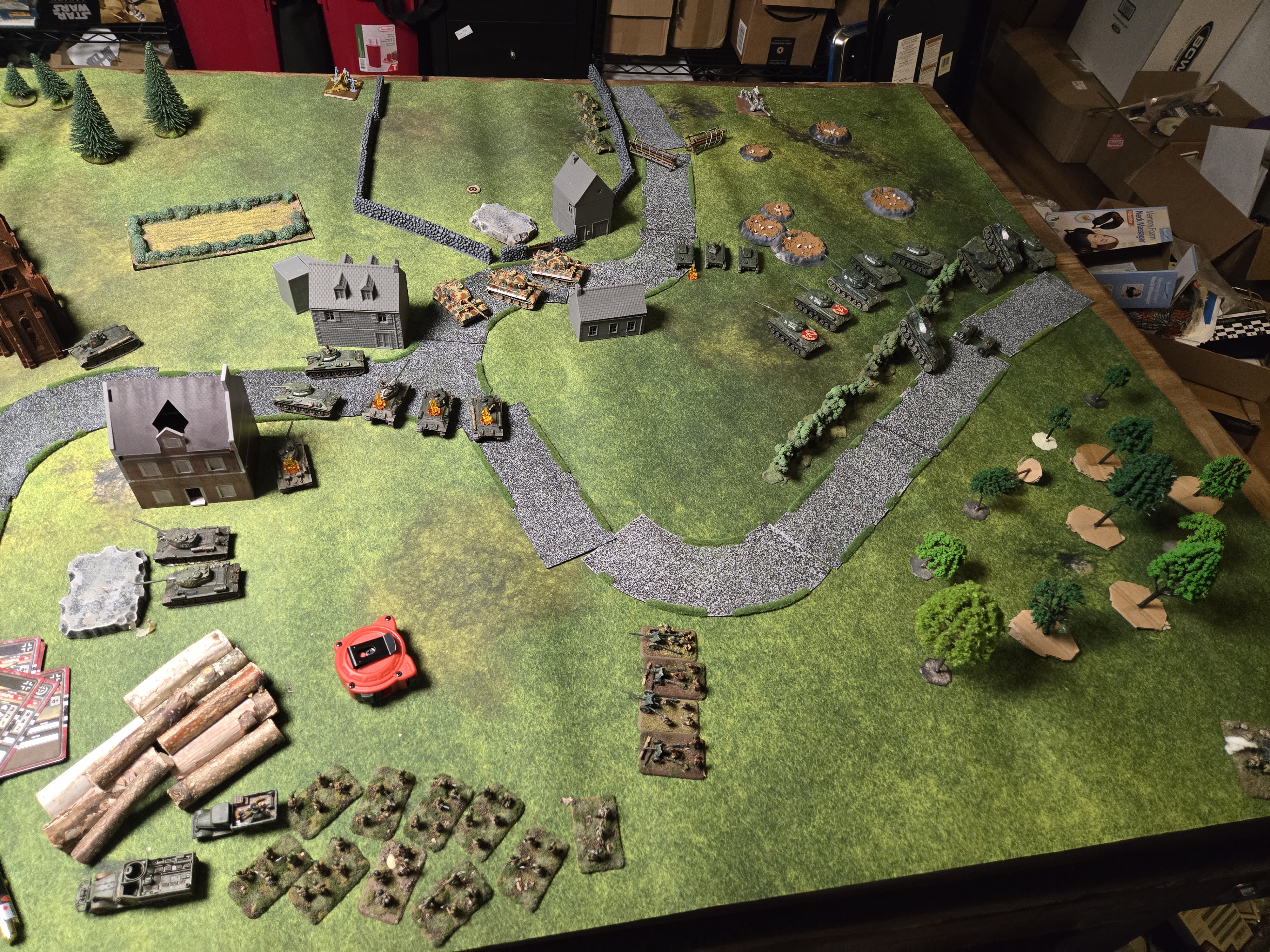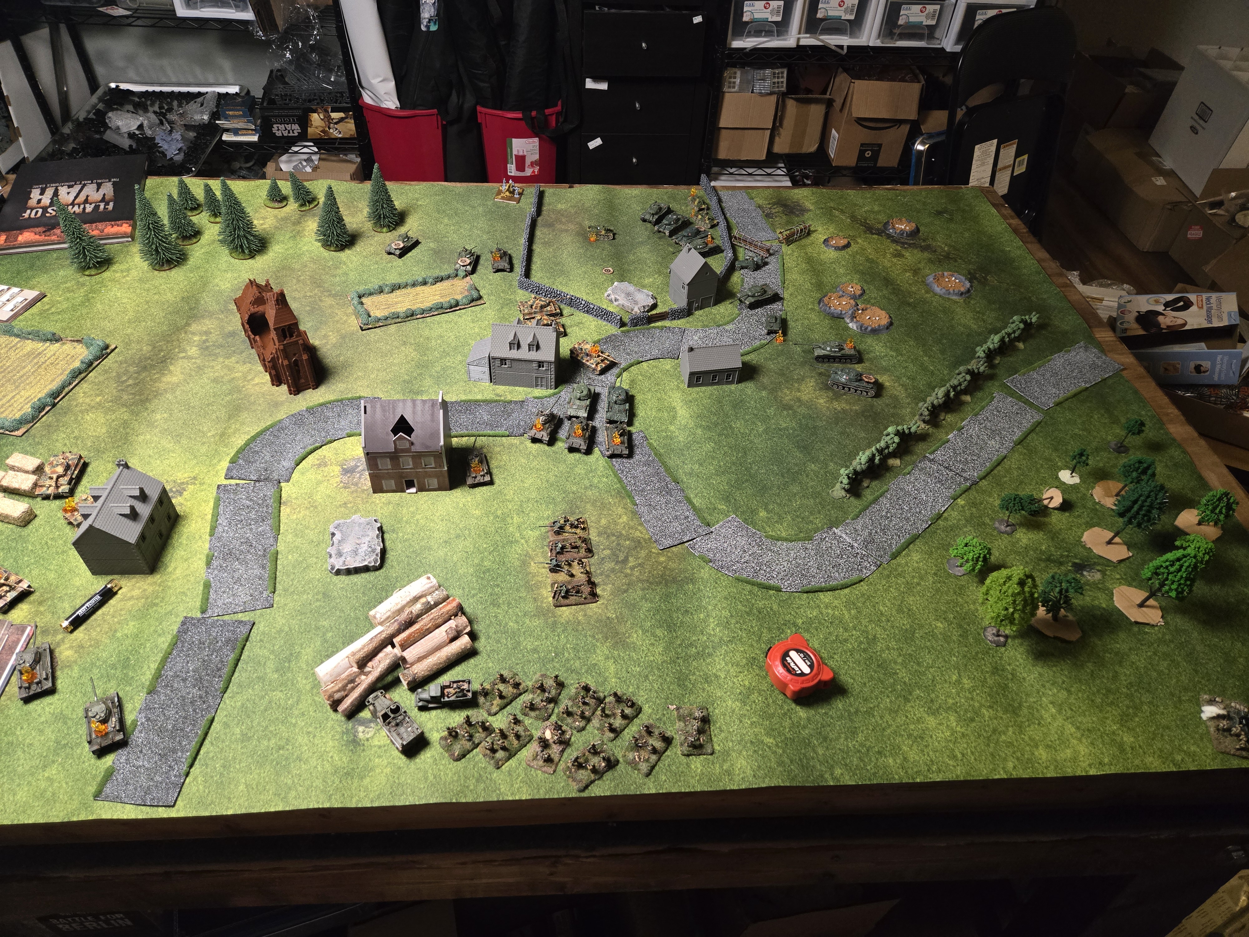 The primary deployment is below. The Germans have three Tiger Tanks in reserve; they will enter the game from the bottom left.