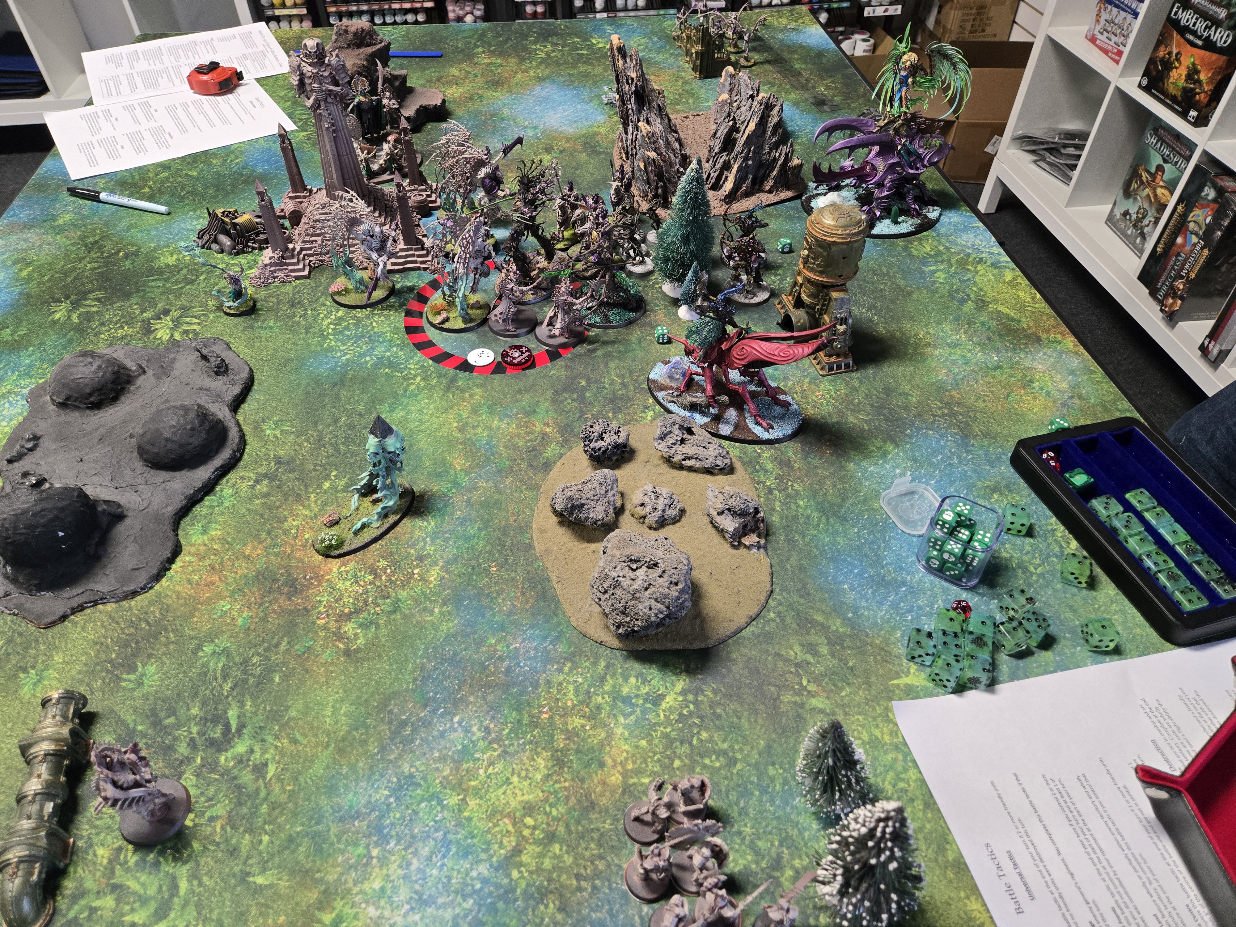Terrain: My biggest kicker. I don’t want jungle ruins on a moon terrain map. This is one thing that irks me about terrain. You spend tons of money and time making nice terrain, so don’t pick up a mat that matches.