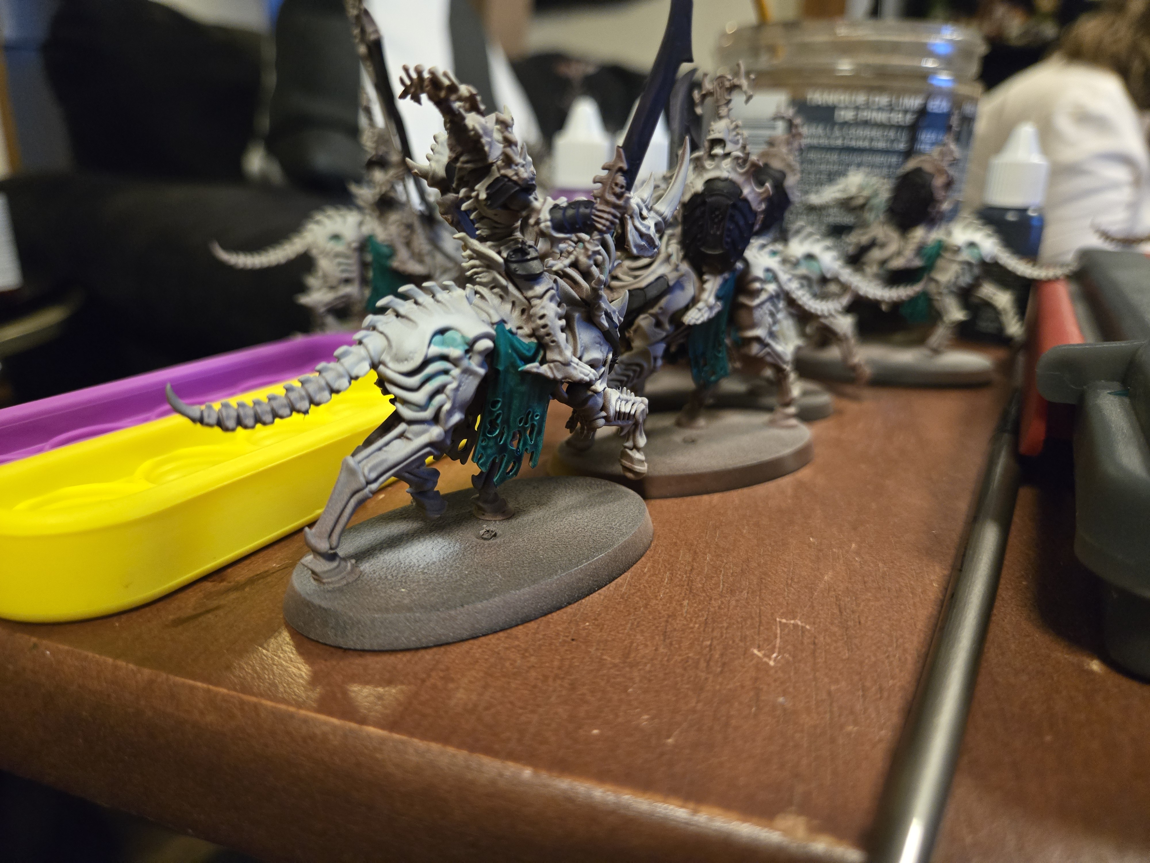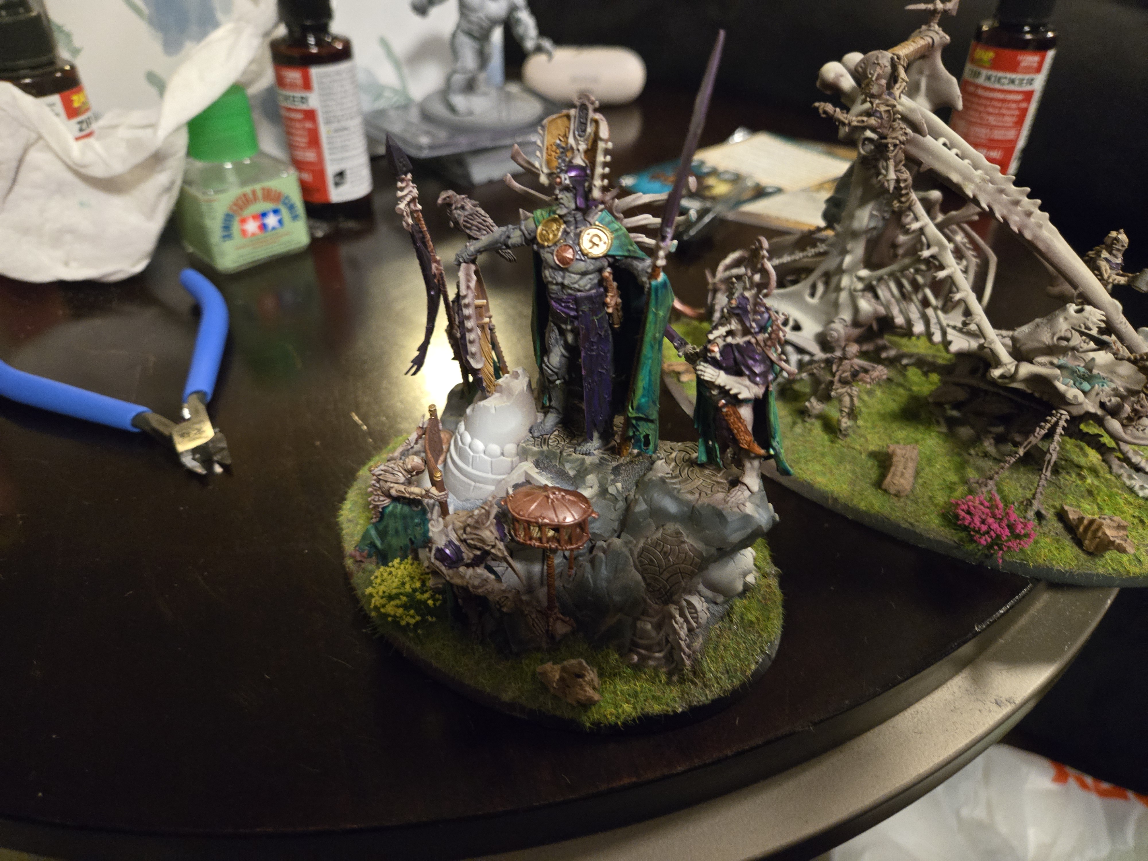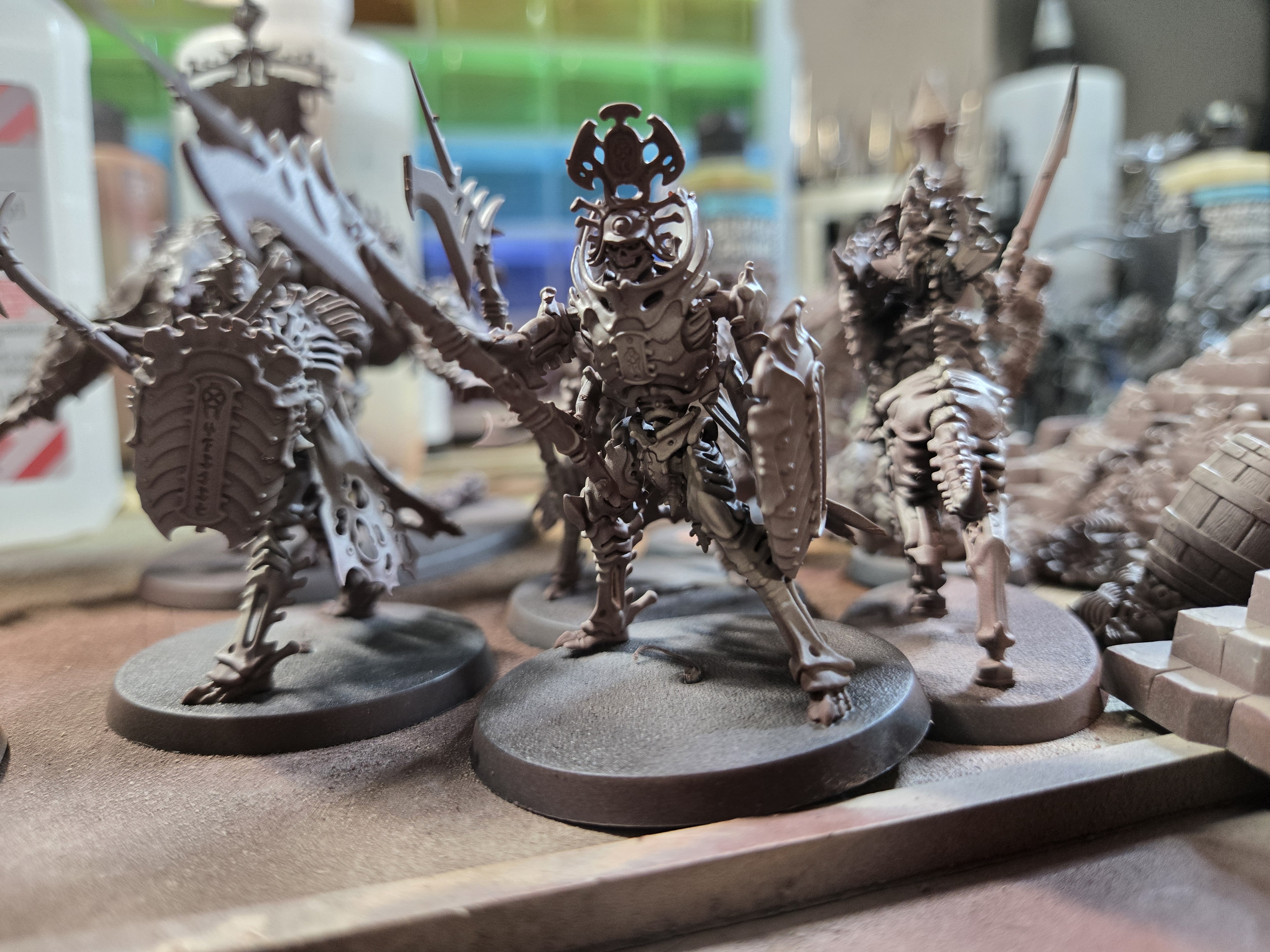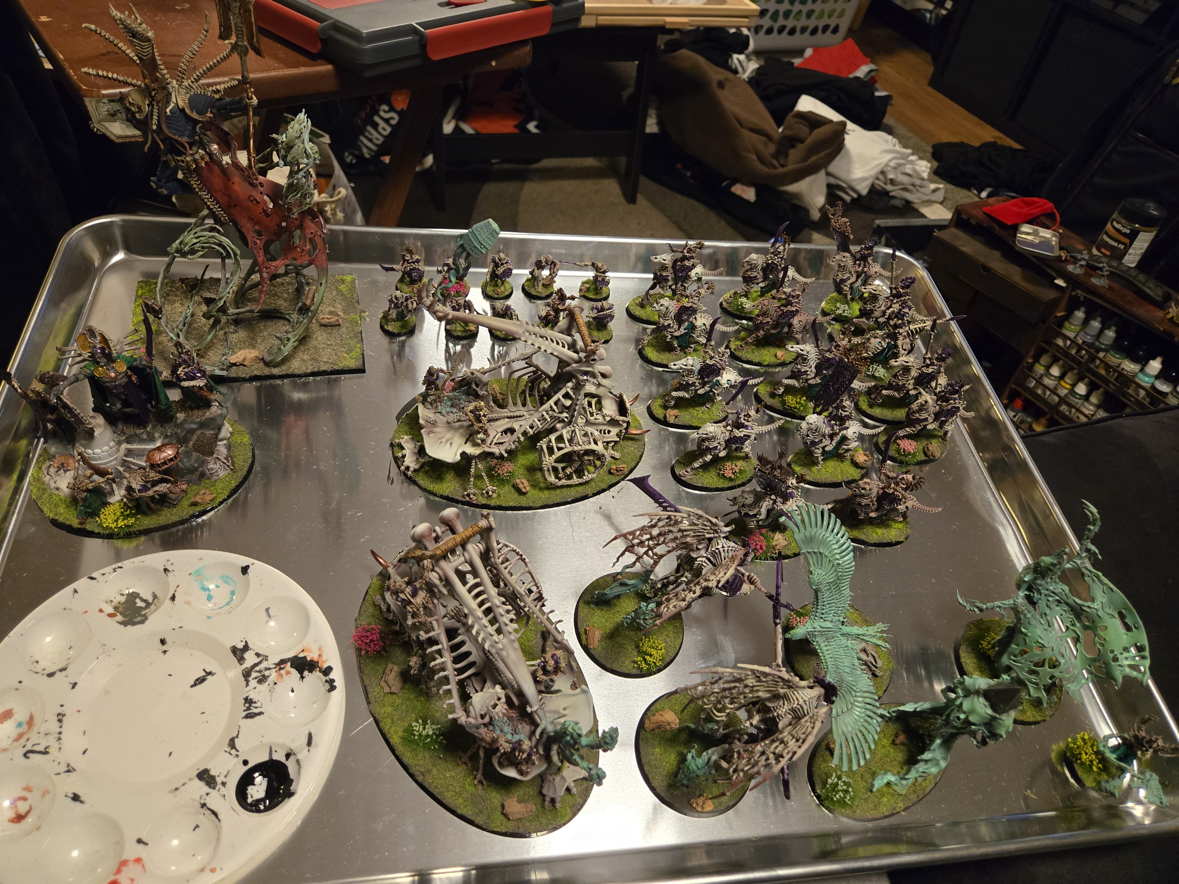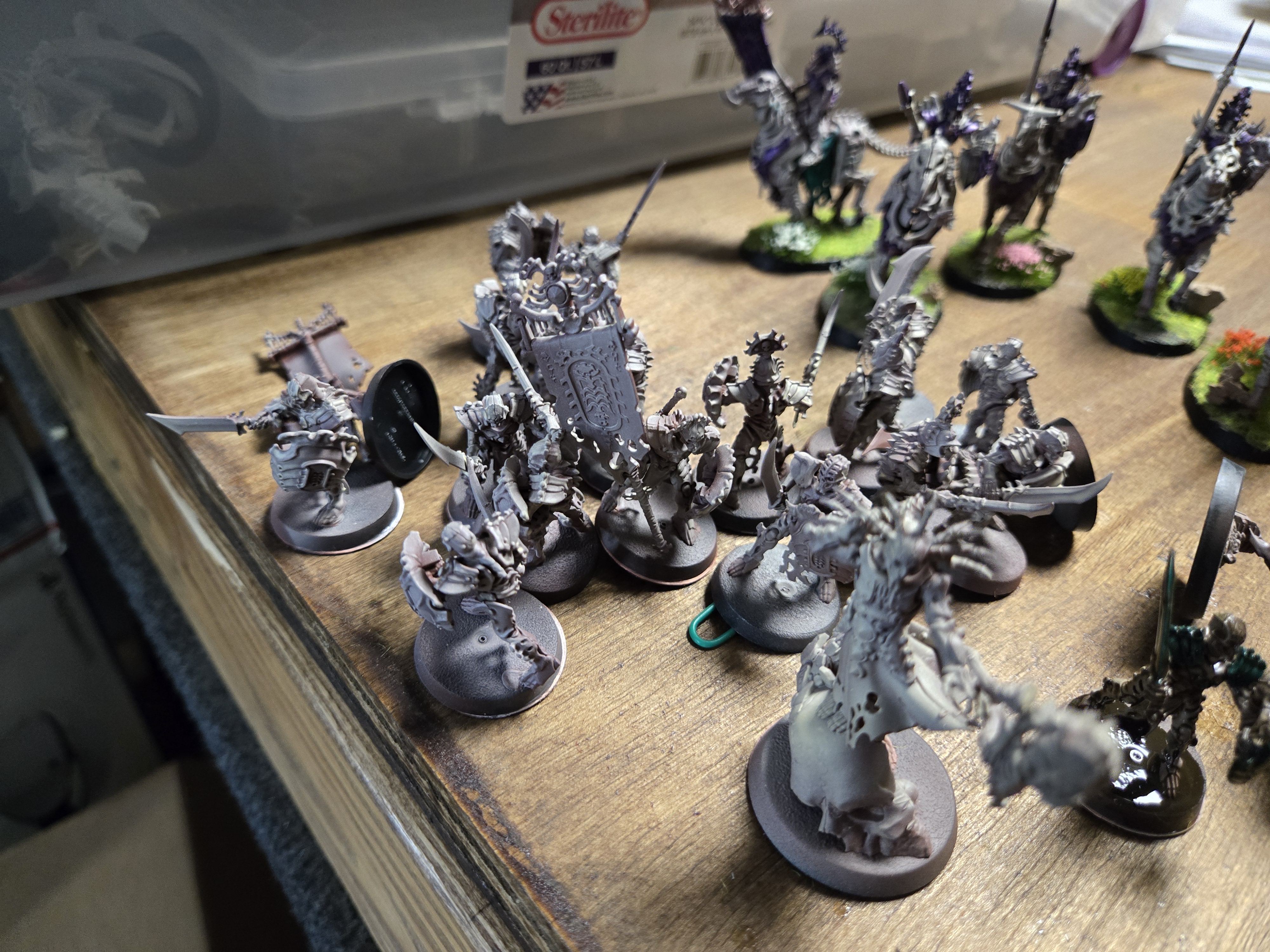 My local gaming store wanted us to do an Age of Sigmar league. One of my goals for the year was to get more Sigmar models on the table and painted. This was a prime opportunity to move on from some of my pile of shame. Many of my armies have 500-1000 points; some even have 2k points. The Bonereapers were 100% grey.